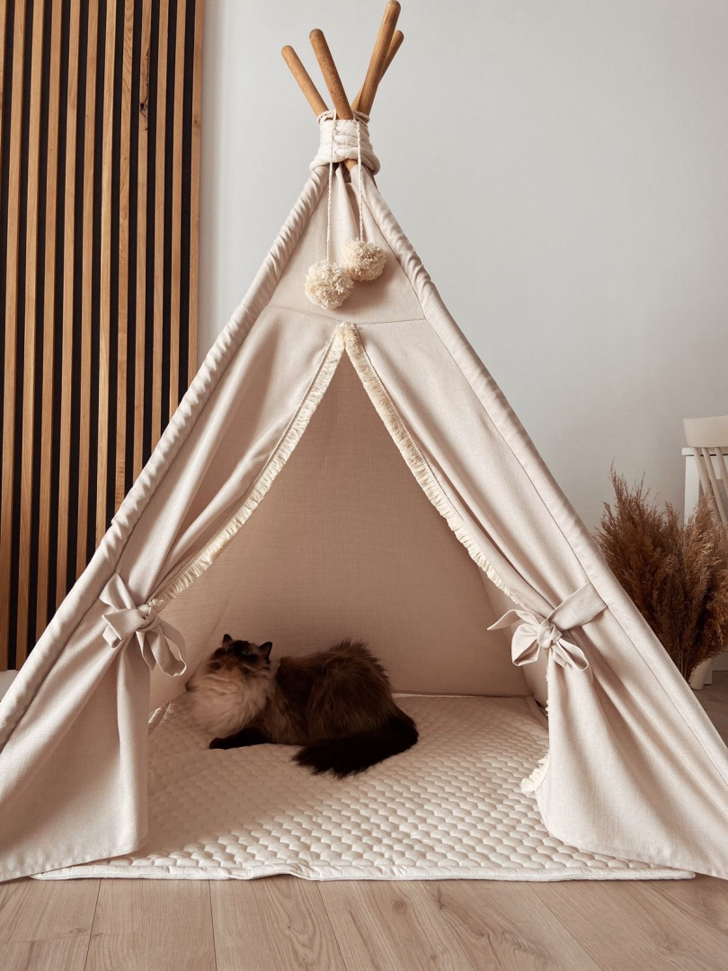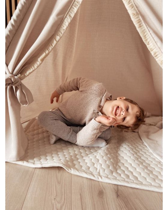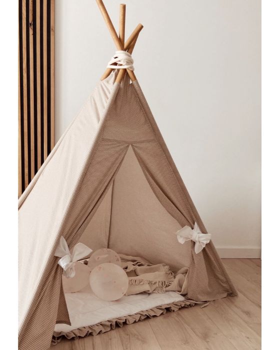 Warto zapewnić dziecku również odpowiednie podłoże. Mata do tipi dziecięcego sprawdzi się idealnie. Jest miękka oraz przyjemna w kontakcie ze skórą najmłodszych. Wart postawić na matę do tipi - beżową.