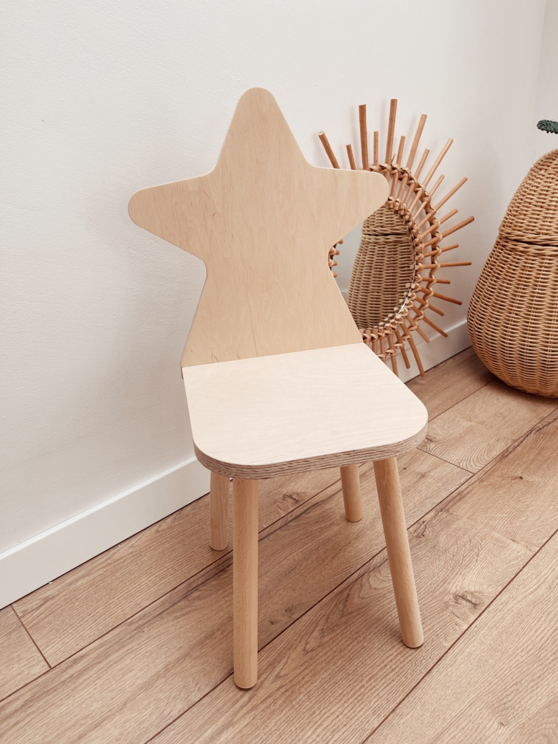 Krzesełko dziecięce gwiazdka przyciąga wzrok oryginalnym oparciem, które zostało wykonane z brzozy fińskiej w stolarni Oh Babe. To wyjątkowy mebel pasujący do każdego pokoiku. Krzesełko drewniane gwiazdka dla dziecka zostało wykonane z najwyższej jakości materiałów.